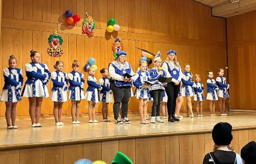 Nachdem die Orden an die Moderatoren überreicht waren, hieß es Aufstellung für die Kindergarde. Diese hatte ihren ersten Auftritt. Den haben sie trotz fehlender Tänzer super gemeistert.
