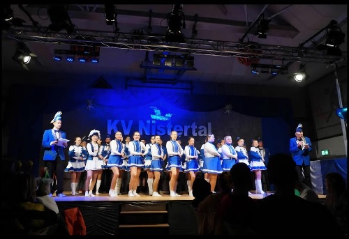 Am Samstag, den 14.02.2026, begann pünktlich um 19:11 Uhr der Höhepunkt der närrischen Session in Nistertal: die große Karnevalssitzung. Alle Aktiven in blau-weiß zogen unter den Klängen des Einmarsches "Mir komme mit alle Mann vorbei" in den Saal ein. Die Sitzungspräsidenten Anton Hüsch & Thomas Alt begrüßten das Publikum und zahlreiche Ehrengäste.