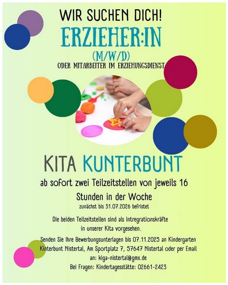 Wir suchen Dich! - Erzieher:in (m/w/d) Kita Kunterbunt