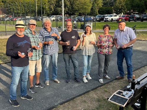 Ein Teil der Boule-Gruppe aus Nistertal beim Boulespiel