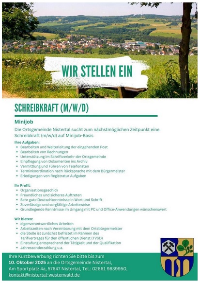 Freitag, den 17.10.2025 um 18:33 Uhr ins Bürgerhaus Nistertal eingeladen.